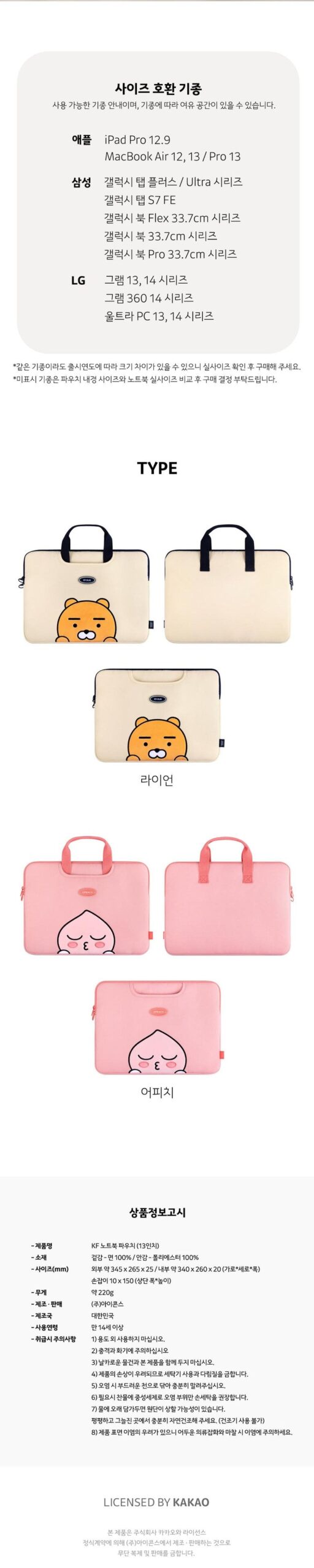 카카오프렌즈 라이언 13인치 노트북 파우치
