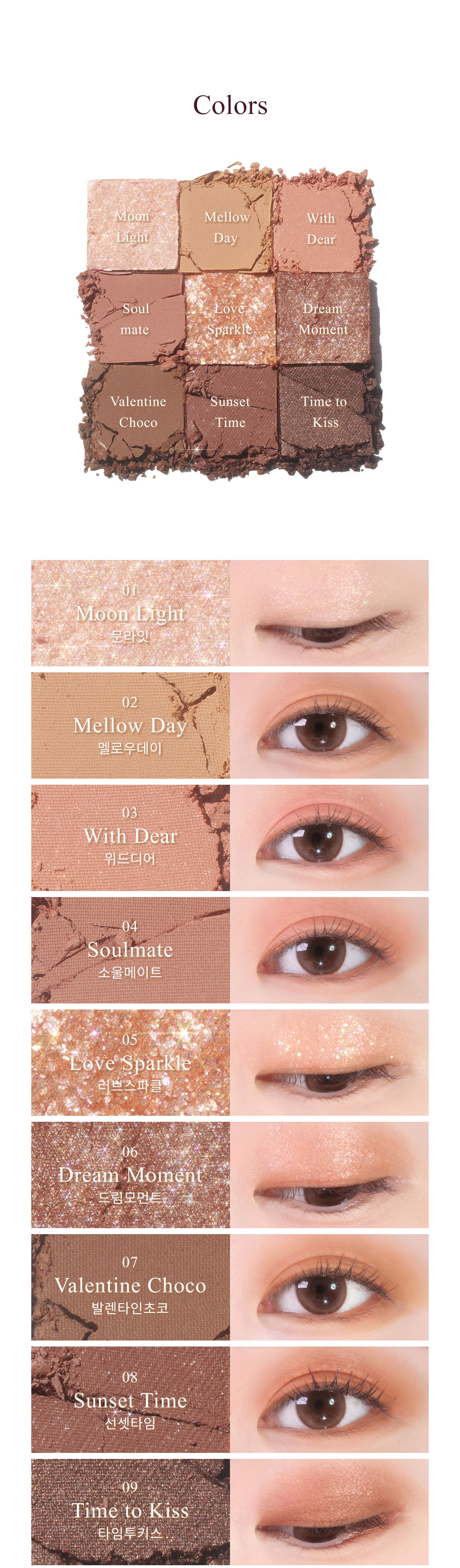 - Curated Shade Harmony: Discover nine perfectly coordinated eyeshadows that effortlessly blend together, offering endless possibilities for stunning eye looks, from natural everyday beauty to glamorous statements.