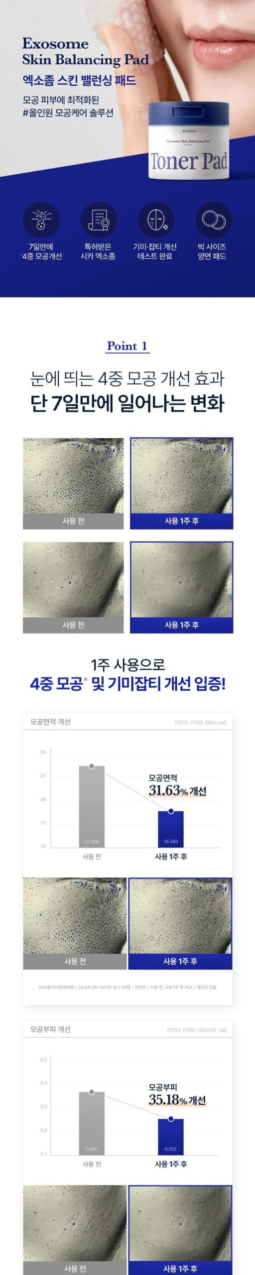 I’ve been using the KIOSKIN Exosome Skin Balancing Pads for a week, and I’m truly impressed. The inclusion of Cica exosomes really seems to boost my skin’s overall appearance. After just seven days, I’ve noticed a significant reduction in pore visibility and smoother texture. It also does a fantastic job of exfoliating dead skin without causing irritation—my sensitive skin handled it beautifully! This pad is an all-in-one solution that cleanses and balances effectively.