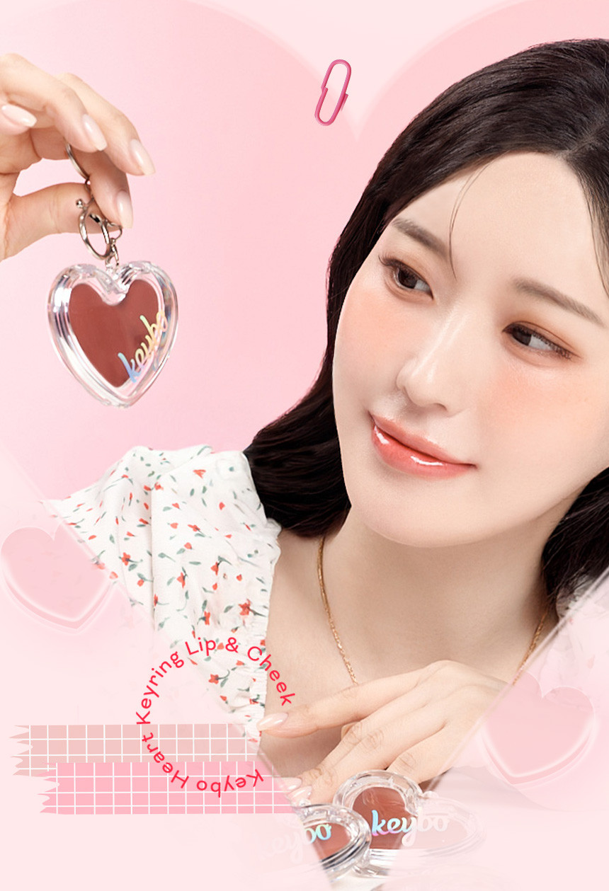 This charming heart-shaped keyring doubles as a versatile lip and cheek color. The compact design makes it perfect for on-the-go touch-ups while adding a cute accessory to your bag.