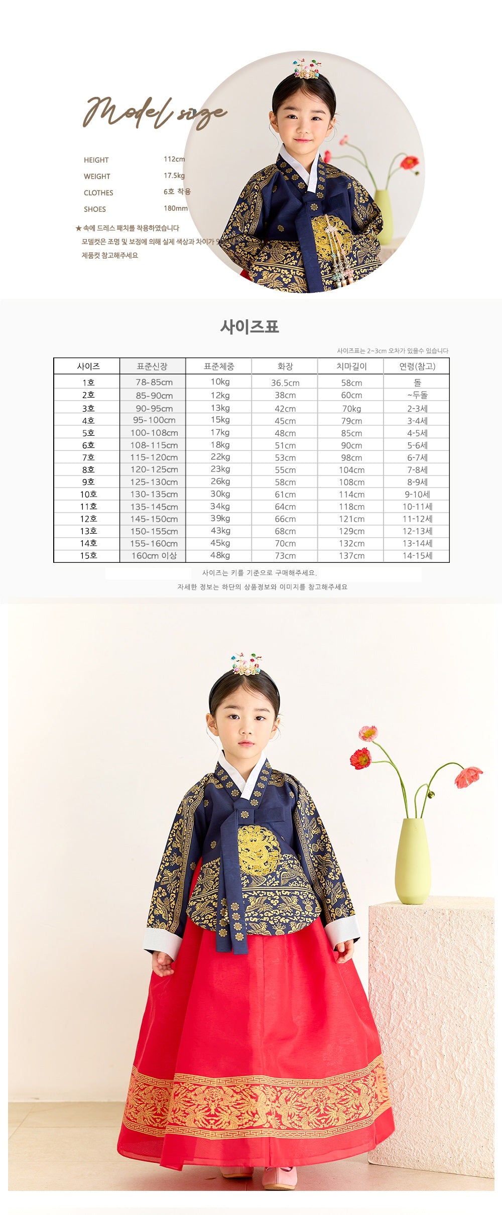 - Hanbok designs are generously sized. Choose based on the child’s height rather than age.