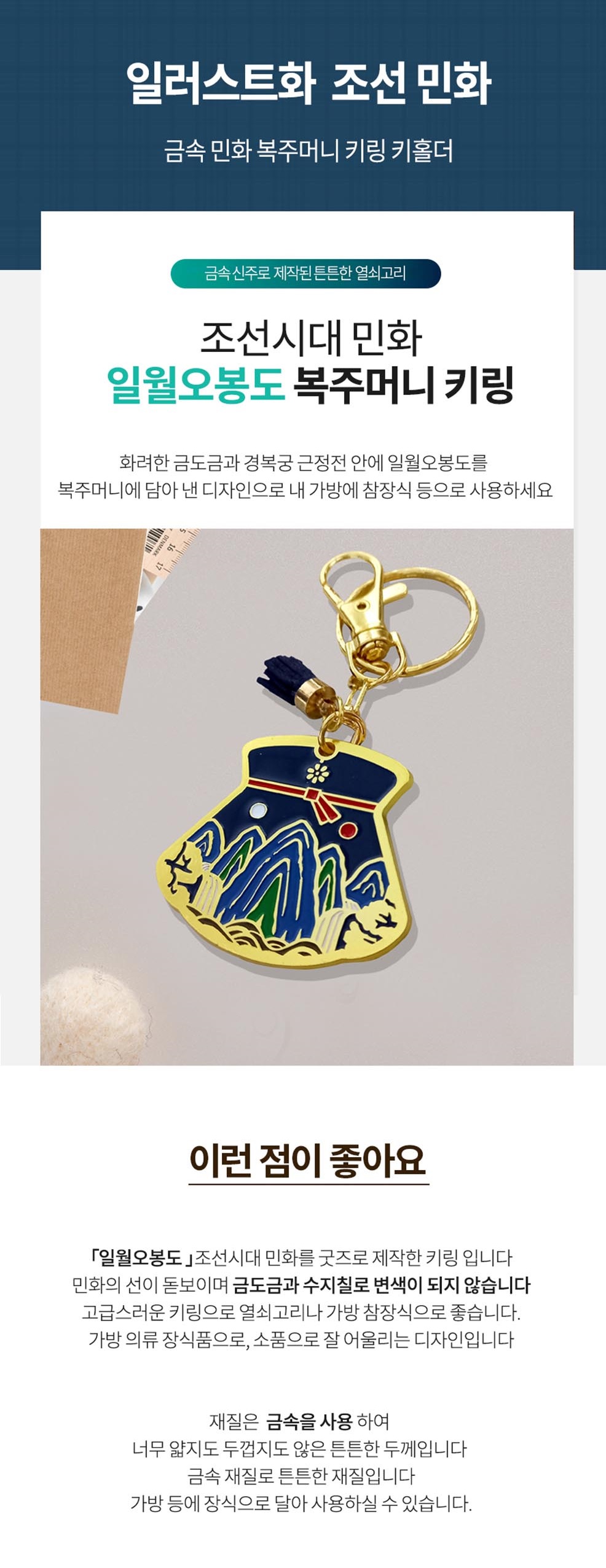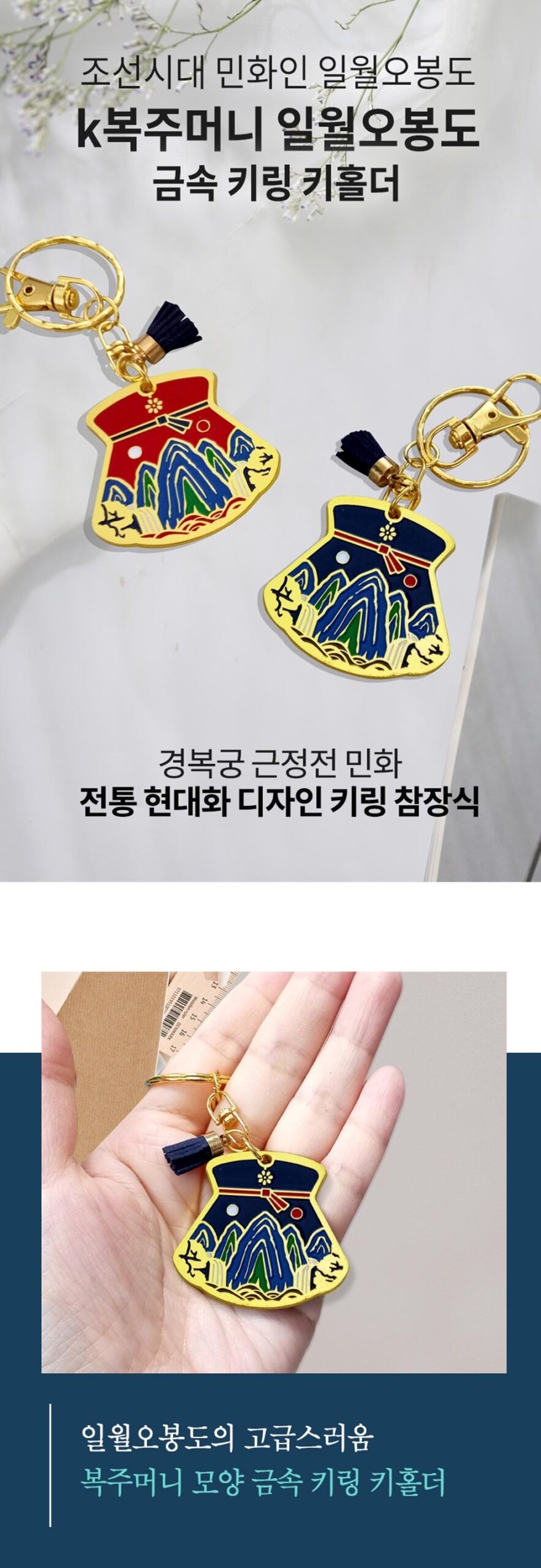 Carry a piece of Korean tradition wherever you go with the Ilwolobongdo Lucky Pouch Metal Keyring. Inspired by the royal screen painting displayed in Gyeongbokgung’s Geunjeongjeon Hall, this keyring blends Joseon-era folk art with a modern accessory design.