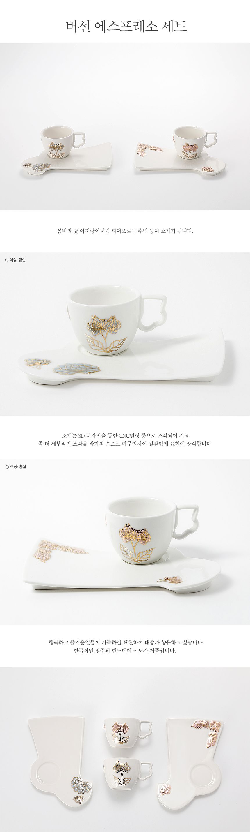 Experience the perfect fusion of Korean heritage and contemporary coffee enjoyment with this exquisite Beoseon Espresso Set. The set features a uniquely designed saucer shaped like a traditional Korean Beoseon (버선) sock and an elegant cup adorned with delicate floral motifs.