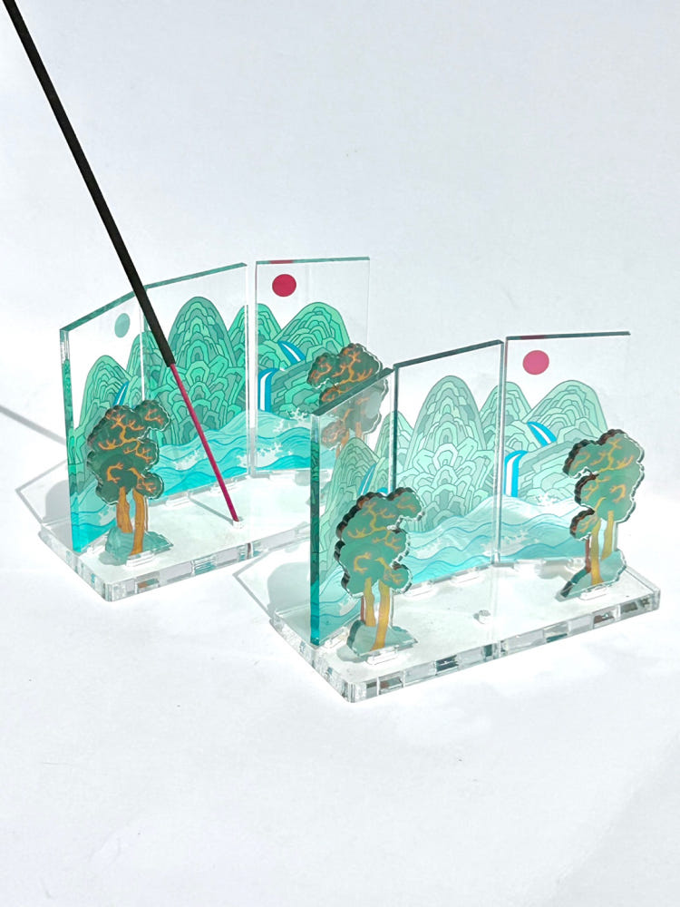 Crafted from high-quality, crystal-clear acrylic, the Byeongpung Incense Holder features three individual panels that elegantly mimic the traditional Korean folding screen. This innovative modular design allows you to arrange the panels in various configurations – a straight line, an elegant curve, or even separate pieces – adapting effortlessly to your space and personal aesthetic. Create your own tranquil landscape and let the gentle wisps of incense smoke dance through the scene, adding a dynamic, calming element to your environment.
