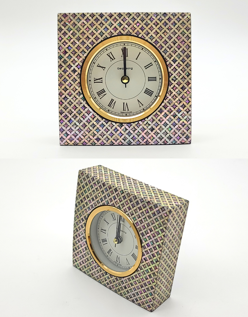 - Add a touch of elegance and sophistication to your home or office decor with the clock's mesmerizing shimmer. The iridescent quality of the mother-of-pearl will catch the light beautifully.