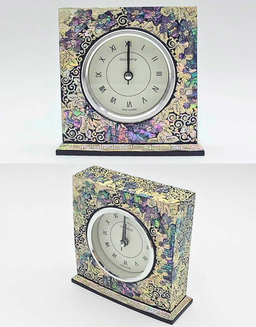 - The use of natural mother-of-pearl means each clock will be unique, with subtle variations in color and iridescence patterns. This uniqueness contributes to its value.