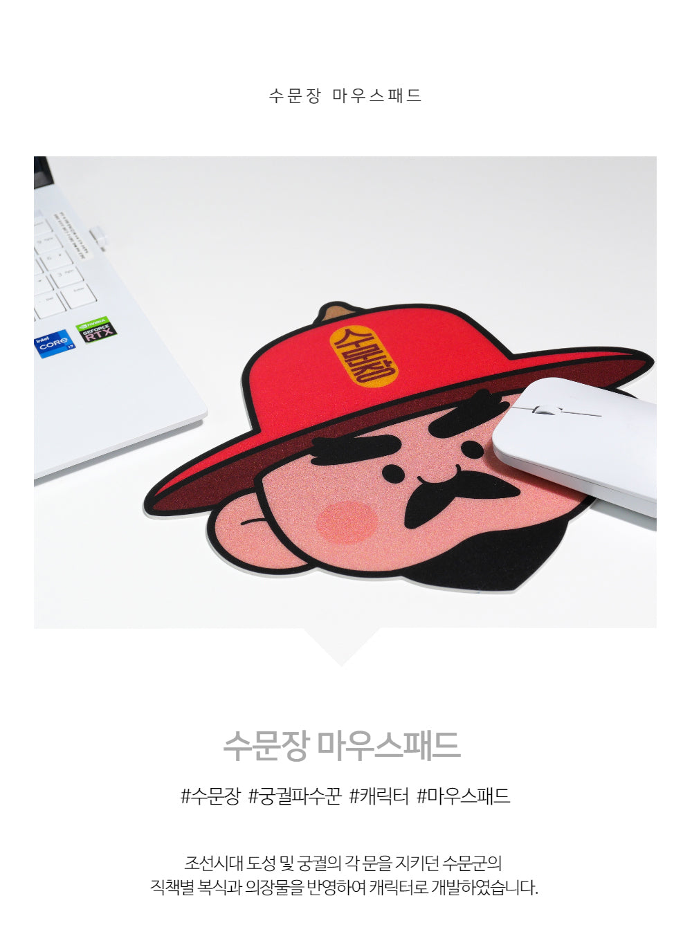 Bring the historical essence of Joseon-era palace guards to your workspace with the Korean Palace Gatekeeper Mousepad. Inspired by the uniforms, weapons, and ceremonial objects of the Suwonjang (Gatekeepers) who protected the royal palaces, this mousepad adds a touch of tradition and history to your desk.