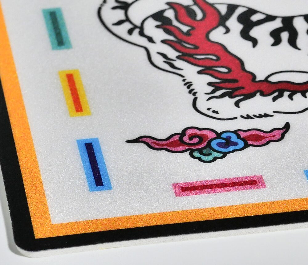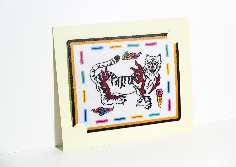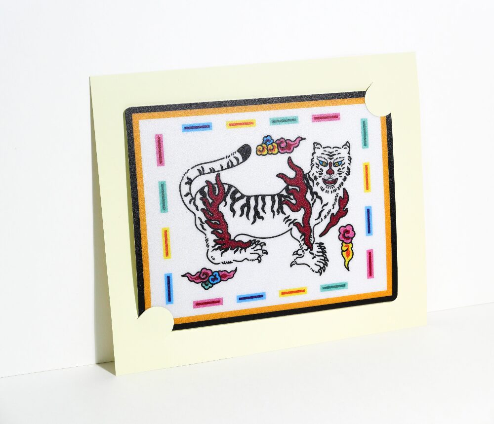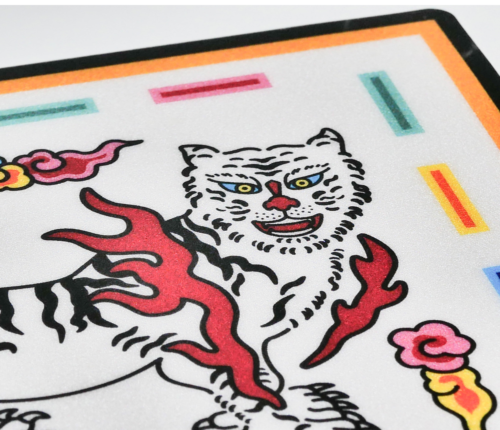 - It showcases a white-winged tiger, symbolizing the protection of the western direction.