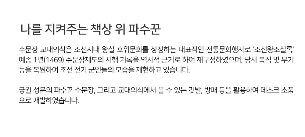 The Suwonjang Guard Changing Ceremony is a renowned cultural event that represents the royal security traditions of the Joseon Dynasty. Based on historical records from the Annals of the Joseon Dynasty (Yejo 1st year, 1469), the ritual has been reconstructed using authentic uniforms and weapons from the era. Now, this rich heritage is beautifully captured in a functional and stylish desk accessory.