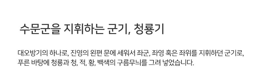 One of the military command banners, the Cheongryonggi was positioned on the left side of the army to lead left-wing forces.