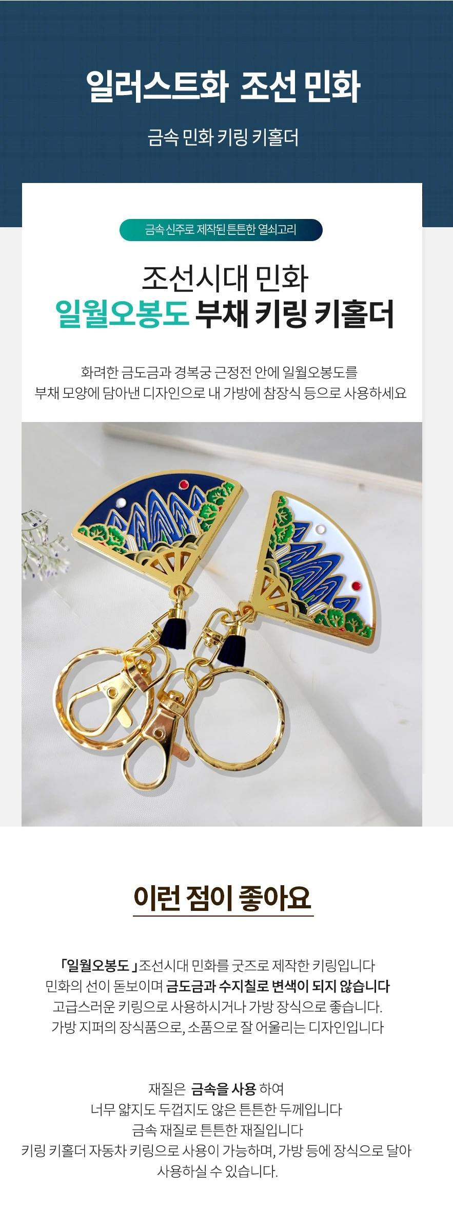 Inspired by the “Irwolobongdo” (Sun and Moon Five Peaks Painting), a traditional Korean royal court painting displayed behind the king’s throne at Gyeongbokgung Palace, this elegant keyring reinterprets heritage into a modern accessory.