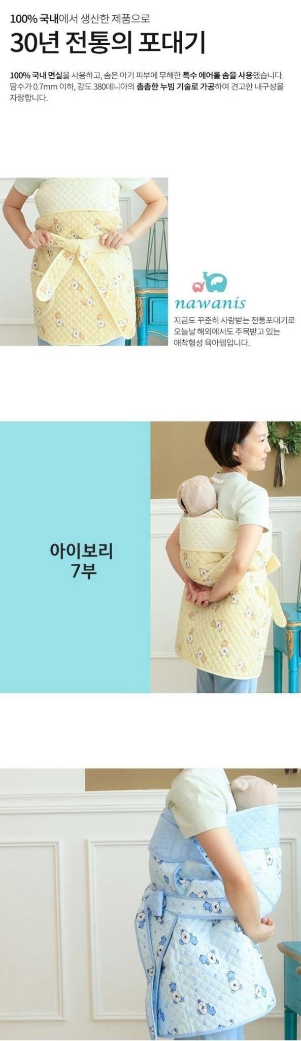 - Traditional Design: Authentic Korean 7-Bu (7부) style back carrier with adorable bear pattern