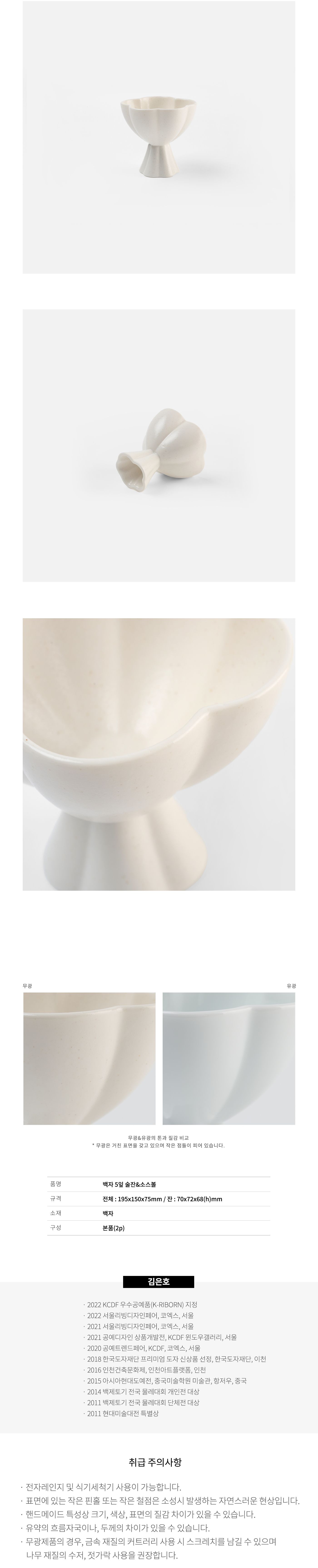 Experience the refined elegance of Korean ceramics with this beautiful white porcelain set by artisan Kim Eun-ho (김은호). Inspired by the restrained beauty of Joseon Dynasty Baekja (백자), this versatile set brings timeless sophistication to your dining table.