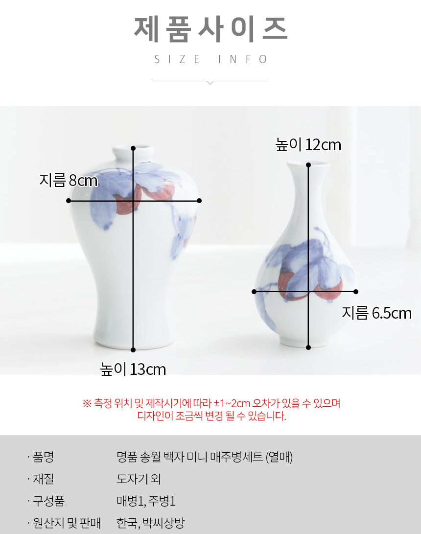 - Set: 2 pieces (Maebyeong + Jubyeong)