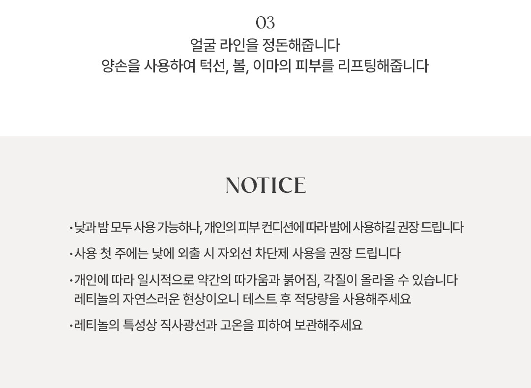 - Mild stinging, redness, or flaking may occur initially—this is normal with retinol. Adjust usage as needed.