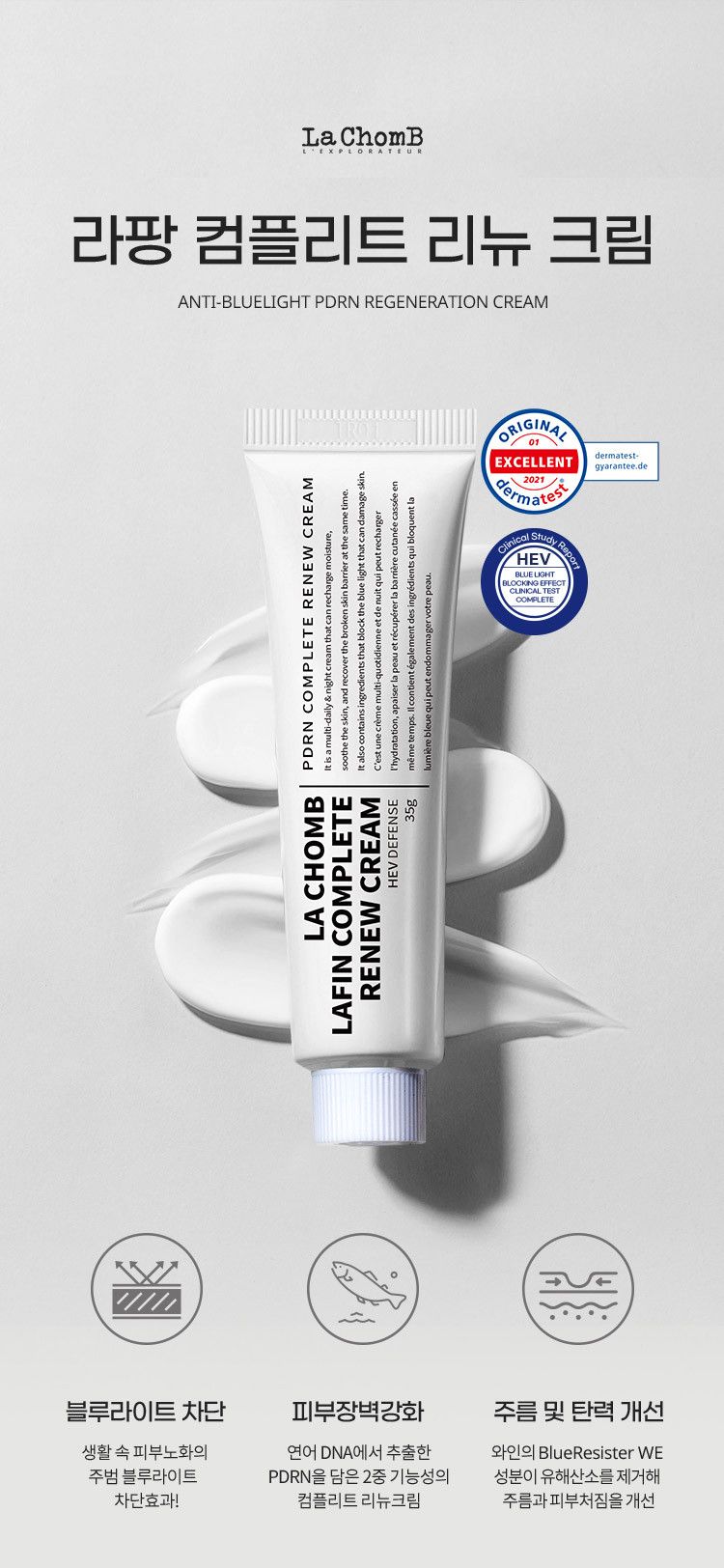 I recently tried the LA CHOMB LAFIN COMPLETE RENEW CREAM, and I’m impressed with its moisturizing properties. The inclusion of PDRN extracted from salmon DNA really sets this cream apart. After using it for a few weeks, my skin feels more resilient against stress and environmental damage, as claimed in the product description. I noticed significant improvement in elasticity and reduction of fine lines around my eyes. Plus, it has helped brighten my complexion that often looked dull due to daily blue light exposure.