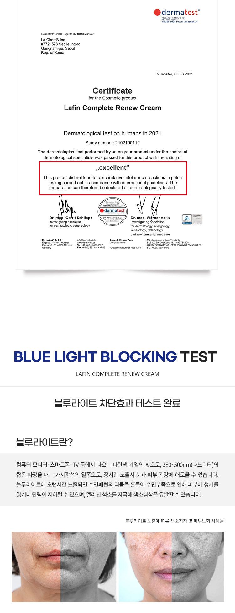 DERMATEST means that the product did not induce toxic or skin-irritating reactions in patch tests conducted in accordance with the guidelines of the ICDRG ( International Contact Dermatitis Research Group ), a globally recognized standard. Products that pass this test can obtain the “EXCELLENT” certification mark, which is the highest safety class.