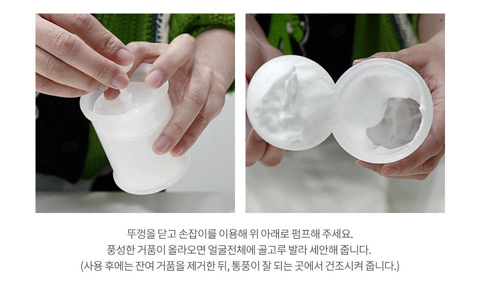 Close the lid and use the handle to pump up and down. When a rich foam rises, apply evenly over the entire face and wash. (After use, remove residual foam and dry in a well-ventilated place.)