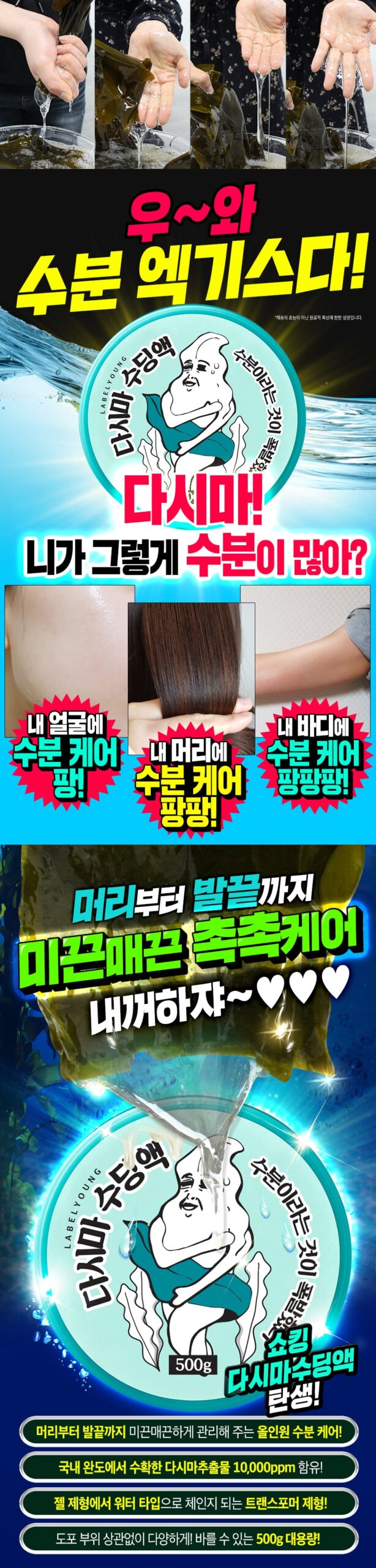 – Contains 10,000PPM of kelp extract harvested in Wando, Korea!
