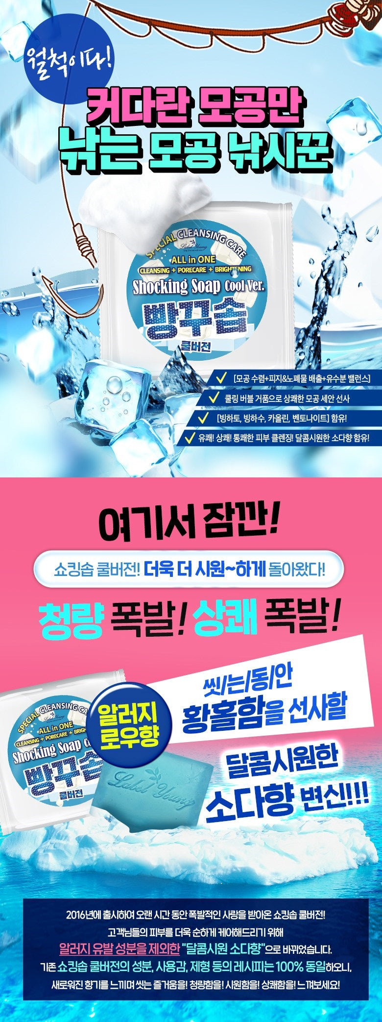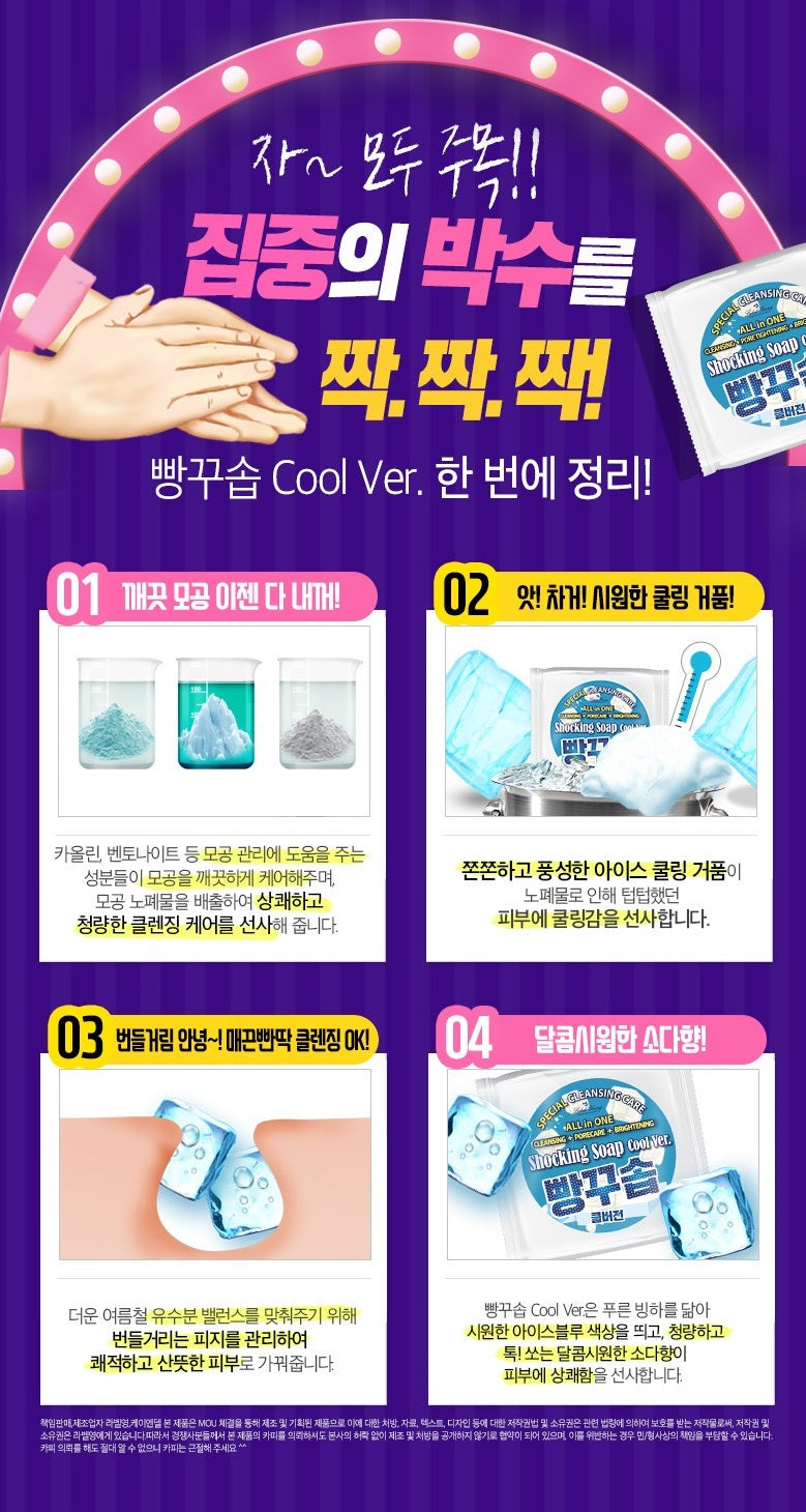 Shocking Soap Cool Ver. It resembles a blue glacier and has a cool ice blue color, refreshing and tangy! The stinging sweet and refreshing soda scent refreshes the skin.