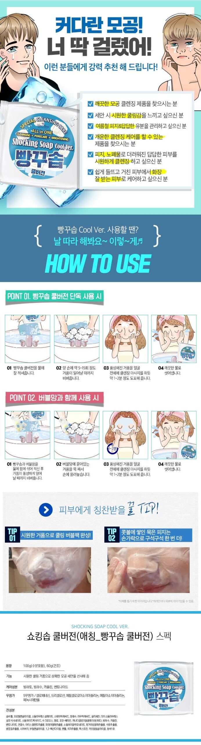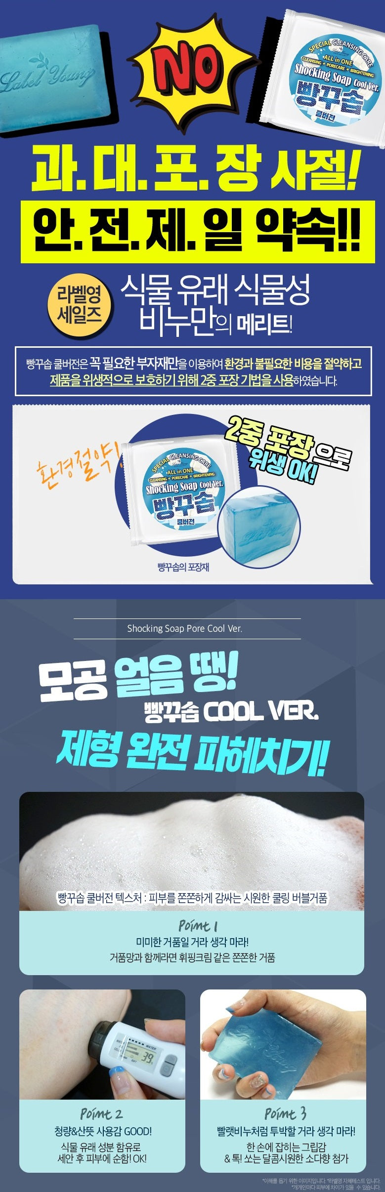 Shocking Soap Cool Ver. uses only essential subsidiary materials to save the environment and unnecessary costs, and uses a double packaging technique to protect the product hygienically.