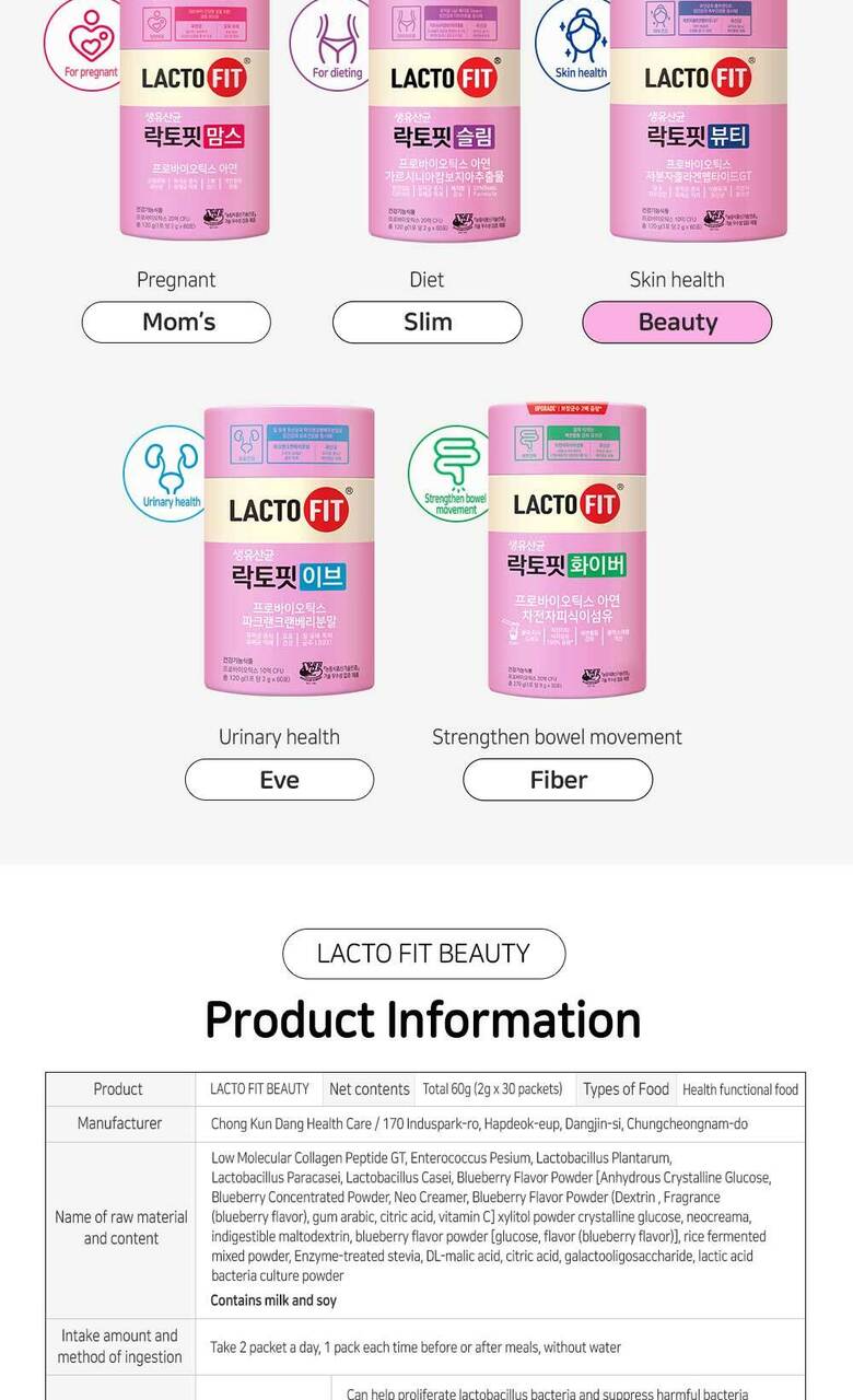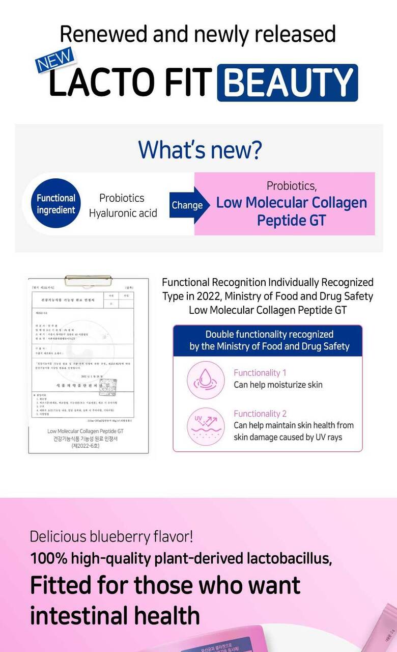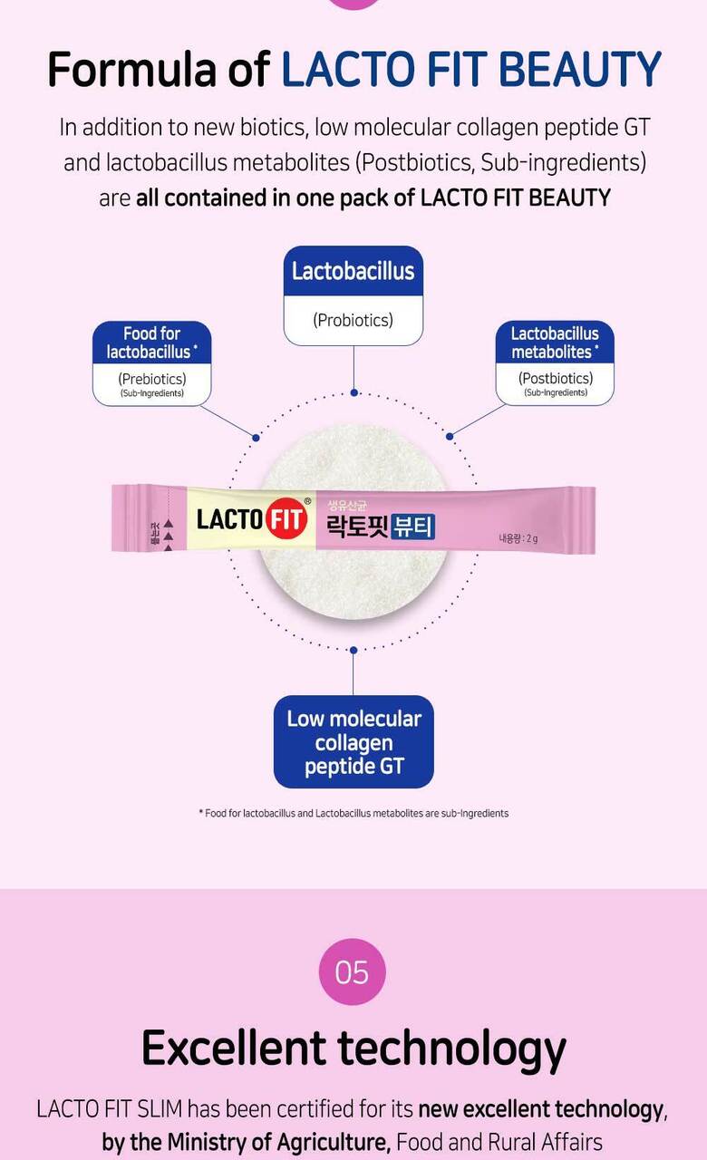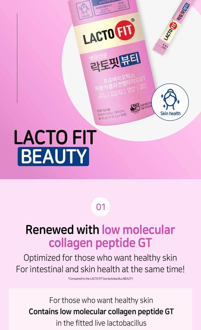 Elevate your health routine with LACTO-FIT Beauty, the perfect blend of probiotics and skin health support, trusted by millions in Korea and beyond.