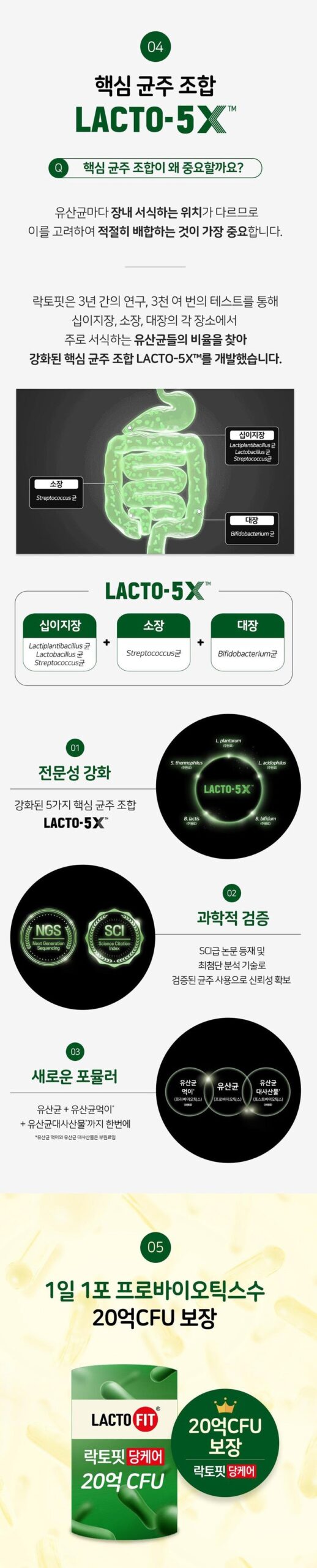 - Carefully developed after three years of research and over 3,000 tests, Lacto-5X™ offers an optimized blend of strains that target various sections of the gastrointestinal tract, from the duodenum to the small and large intestines.