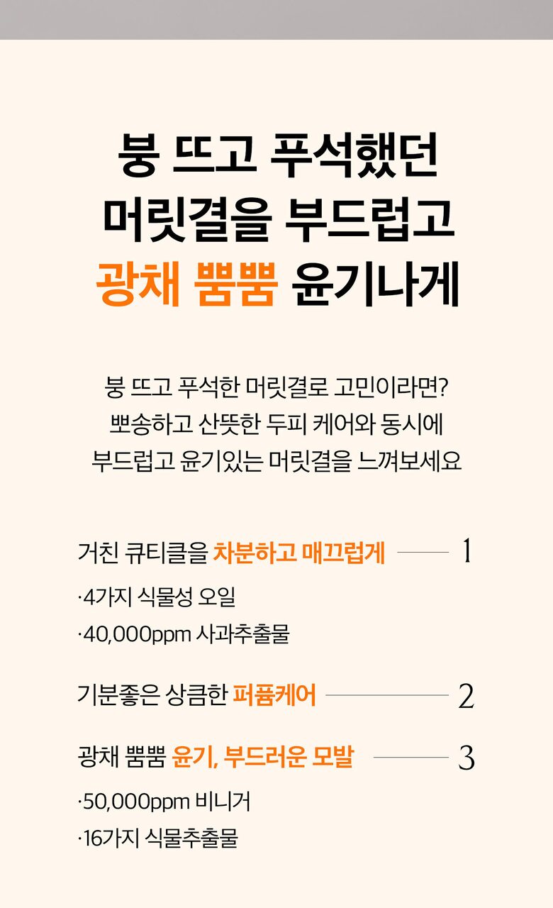 16 plant extracts containing high-content vitamins supply moisture and nutrients to dull, dull scalp and hair, giving shiny and soft hair.