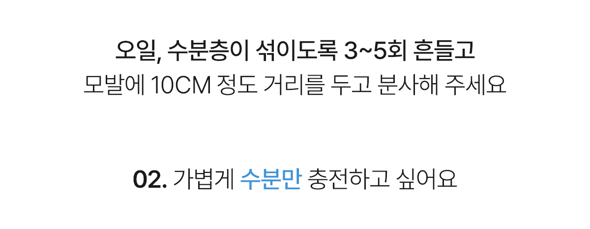 - Hold the mist approximately 10-15 cm away from your hair.