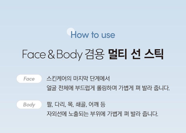 - Body: Apply to areas exposed to UV rays, such as arms, legs, neck, collarbone, and shoulders.