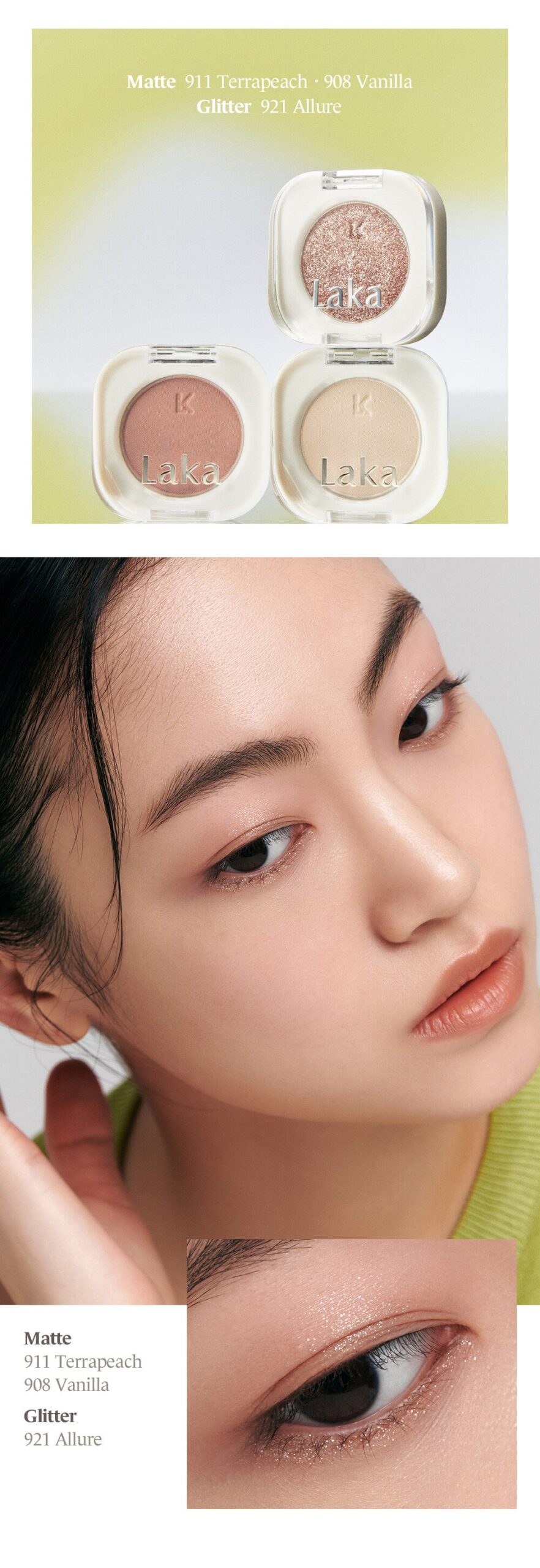 تقدم ظلال العين أحادية اللون من لاكا تجربة جديدة ومتنوعة في عالم المكياج. عند استخدامه، يشعر المرء أن كل تطبيق يضيف لمسة مميزة على النظرة بفضل تركيبة متكاملة تمنح لك إمكانية بناء كثافة اللونية بحسب المزاج والمناسبة. تتميز الألوان بالإشراقة المثالية التي تجعل العيون تتحدث بأناقتها وعفويتها بدون جهد مُبالغ فيه. بالنسبة للذين يسعون لإطلالة يومية منعشة أو مناسبة خاصة مرصعة بمزيد من اللمعان والشجاعة في خيارات الألوان، يوفر هذا المنتج سهولة وسرعة تغطيته الخفية لتناسب كافة الاحتياجات دون شعور بثقل حول الجفون.