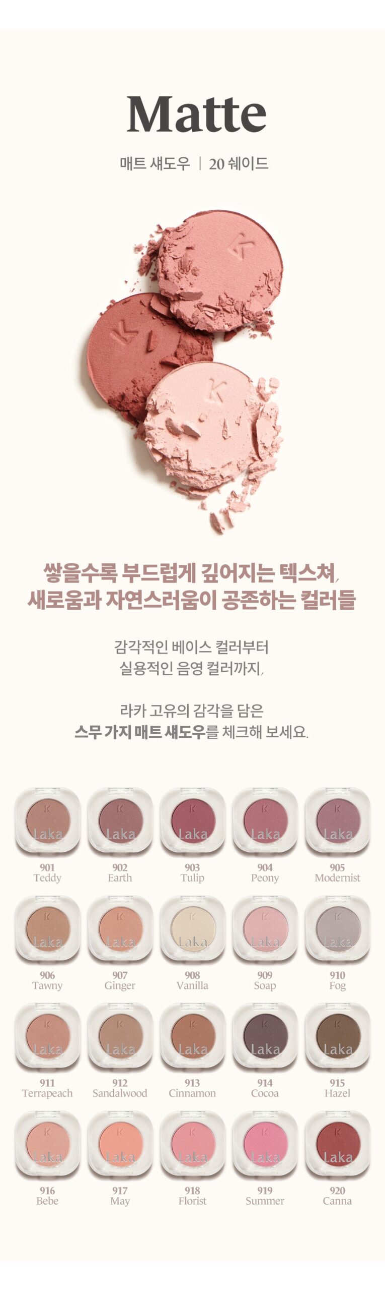 これを試した時、目元が鮮やかに彩られて幸せだった! LAKAのモノアイシャドウは、本当に塗り心地が良くて、最初は軽い色味だけど重ねるほど濃厚になる。だから、おしゃれする日はガッツリメイクできちゃうし、一日中落ち着いた感じも楽しめる。個人的には905番のトーンがお気に入りで、自然な光沢感が大好きなんだ。一瞬でイメチェン成功!!シンプルさと豊富なカラー展開って絶妙すぎない?