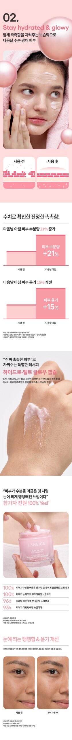 Experience the magic of waking up to rejuvenated, glowing, and visibly firmer skin with LANEIGE Bouncy & Firm Sleeping Mask. Suitable for all skin types.