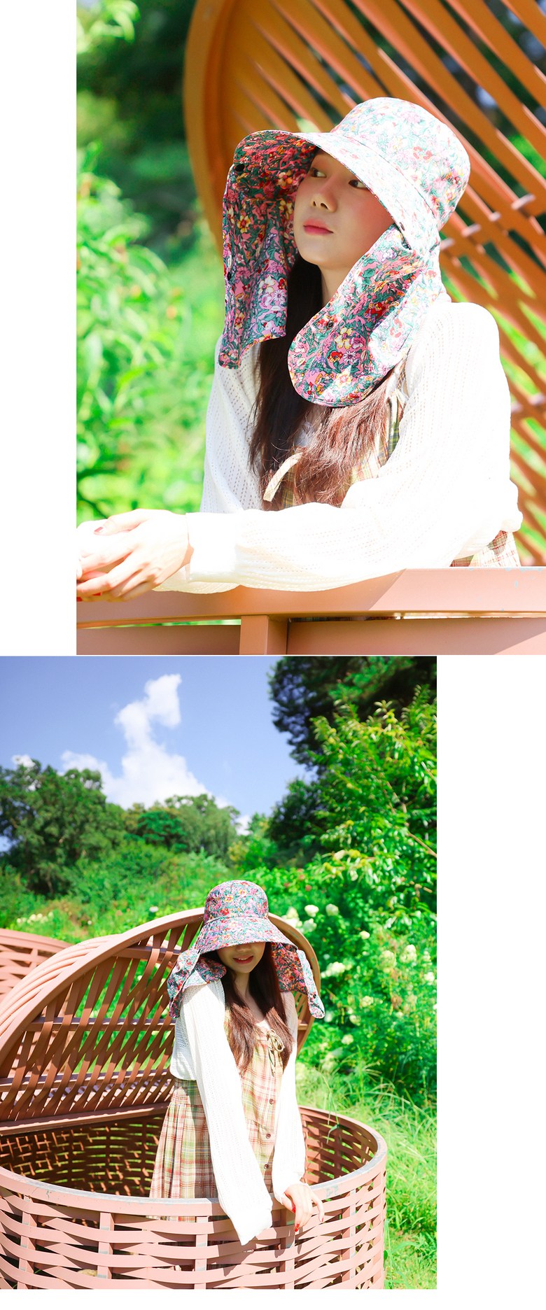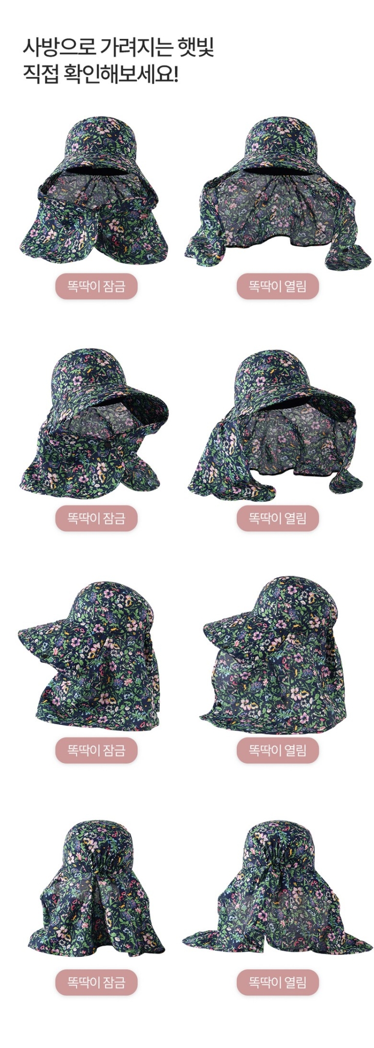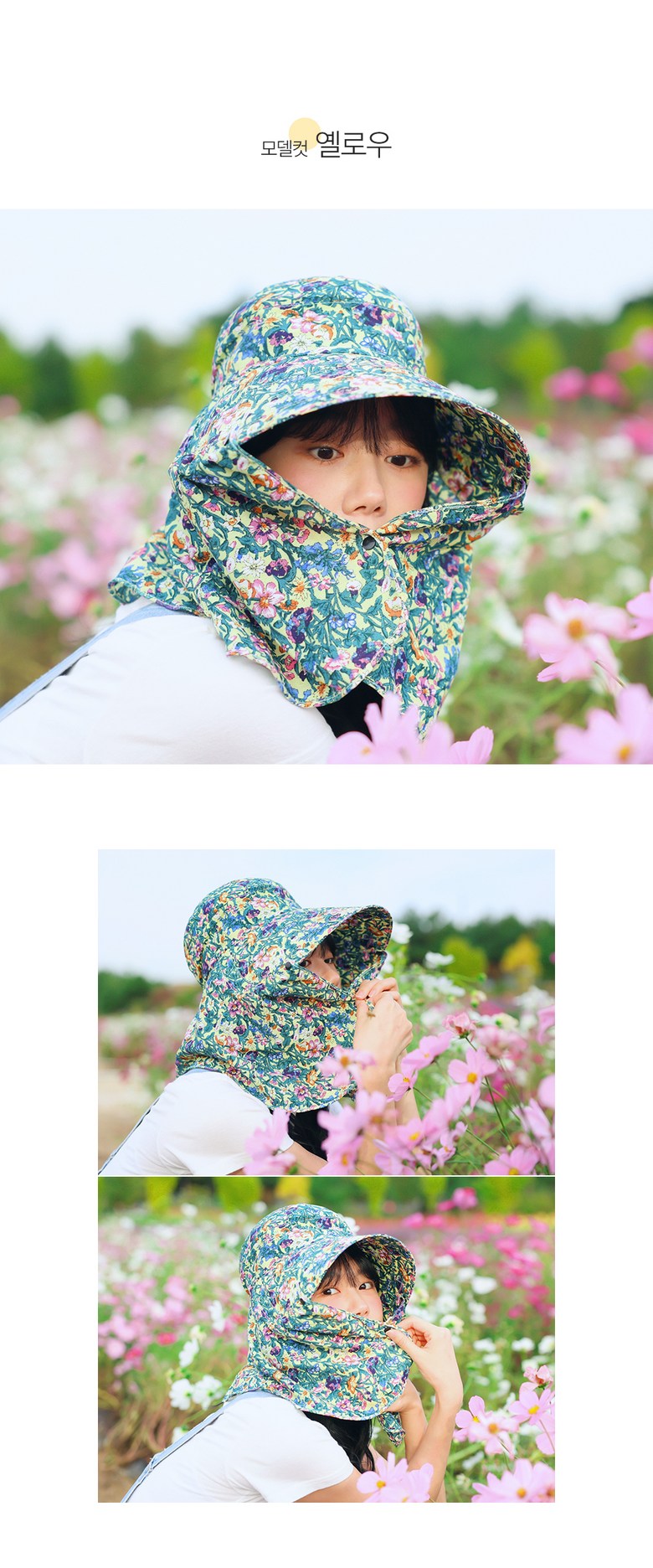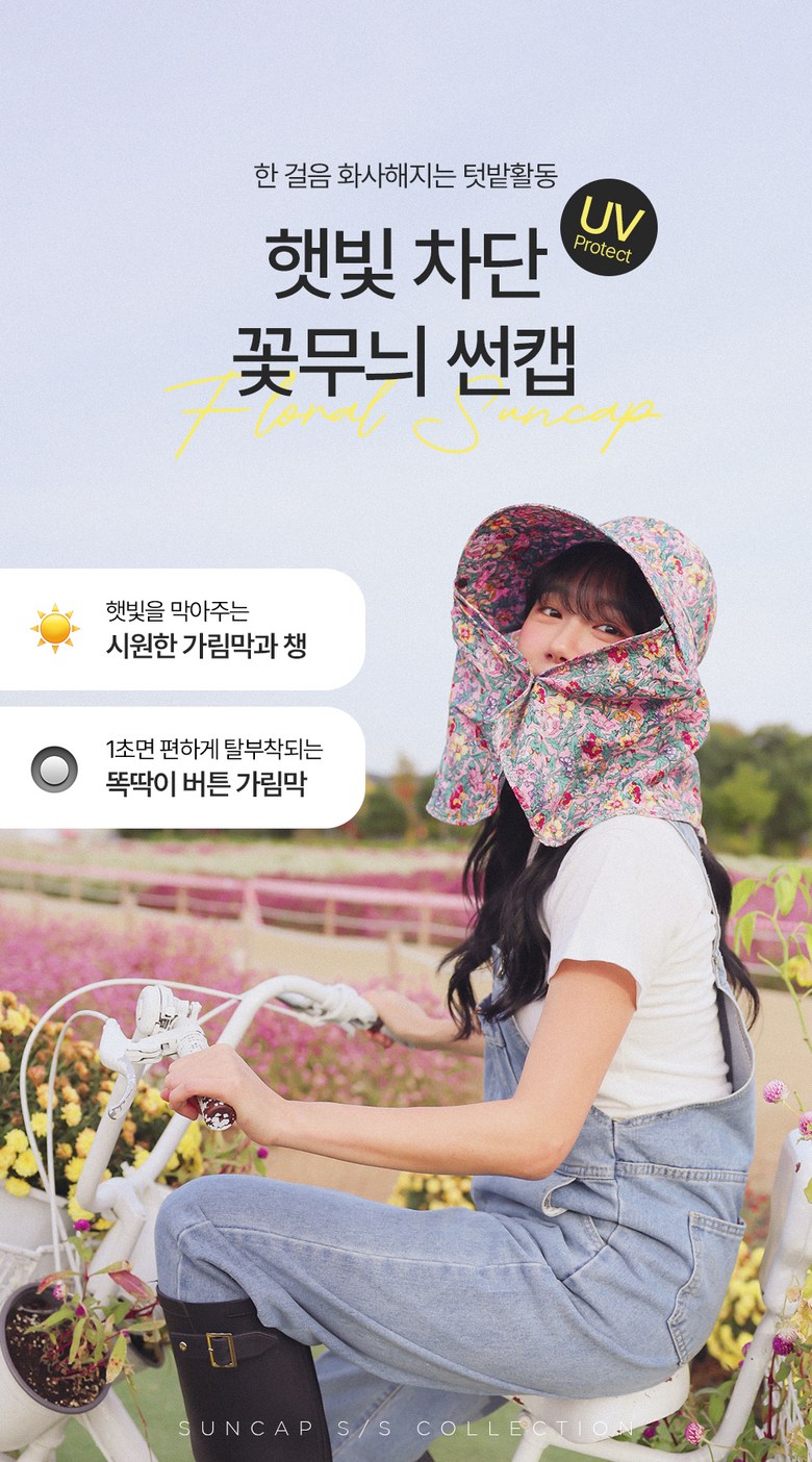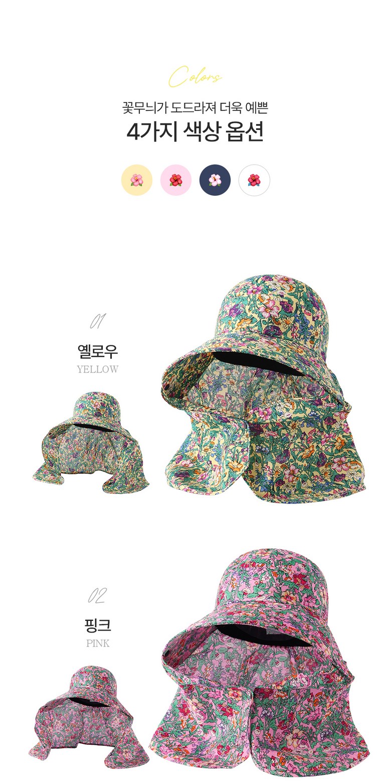 Stay protected under the sun with this stylish Korean-made floral print sun cap, perfect for farming, gardening, hiking, and other outdoor activities.