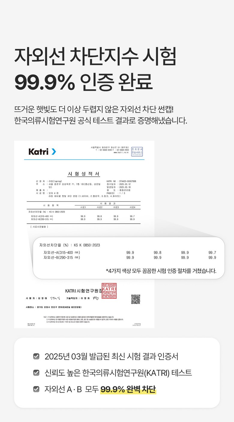 - UV Protection: KATRI certified for excellent UV blocking performance