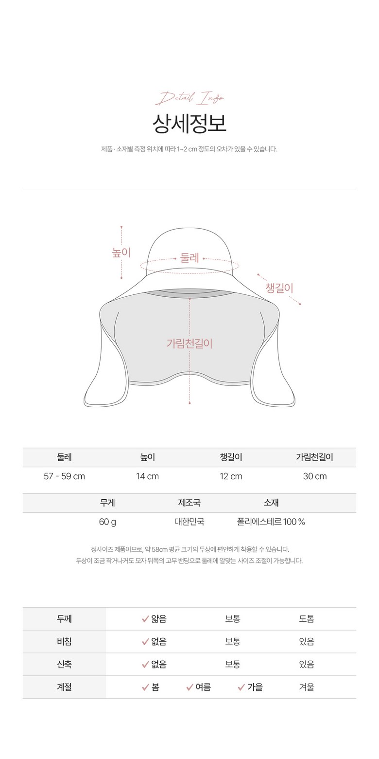 - Size: Circumference 57-59cm / Height 14cm / Brim Length 12cm / Neck Cover 30cm