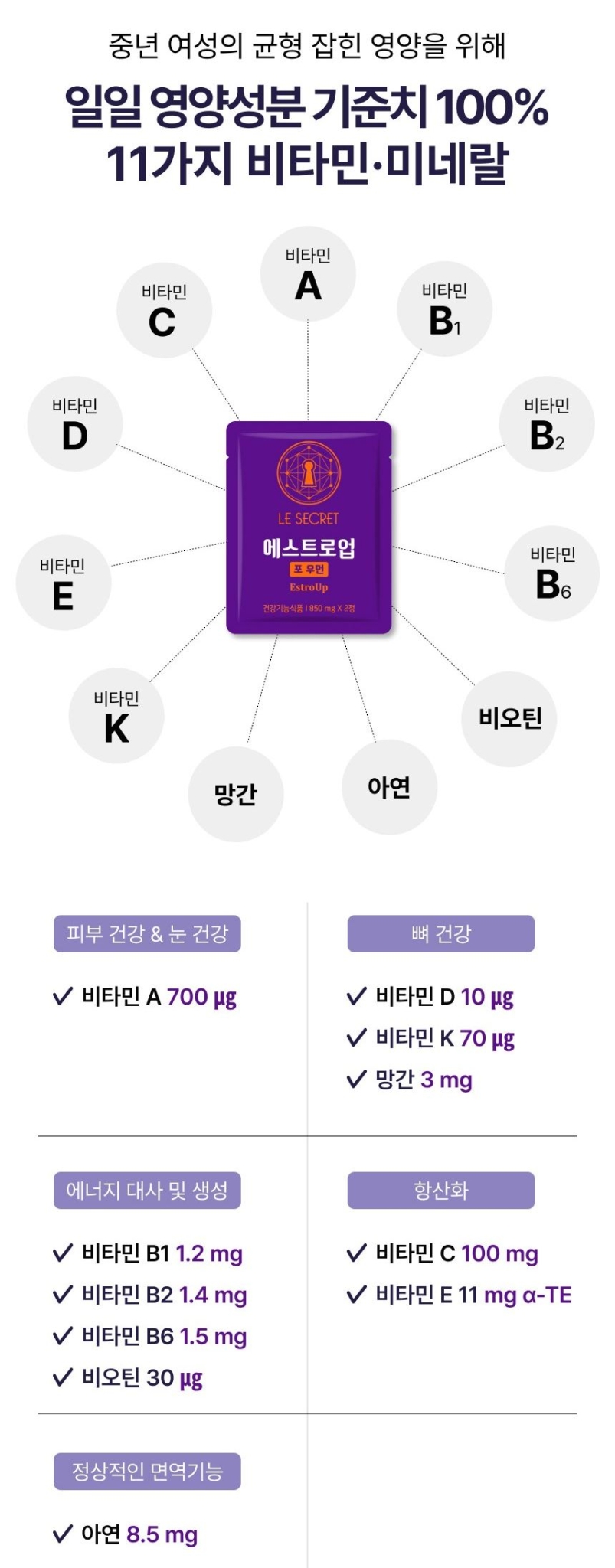 Le Secret Estro Up is a specially formulated nutritional supplement designed to support womens hormonal balance and overall well-being. This premium Korean health supplement contains plant-based phytoestrogens that help maintain womens vitality during the transitional period of life.