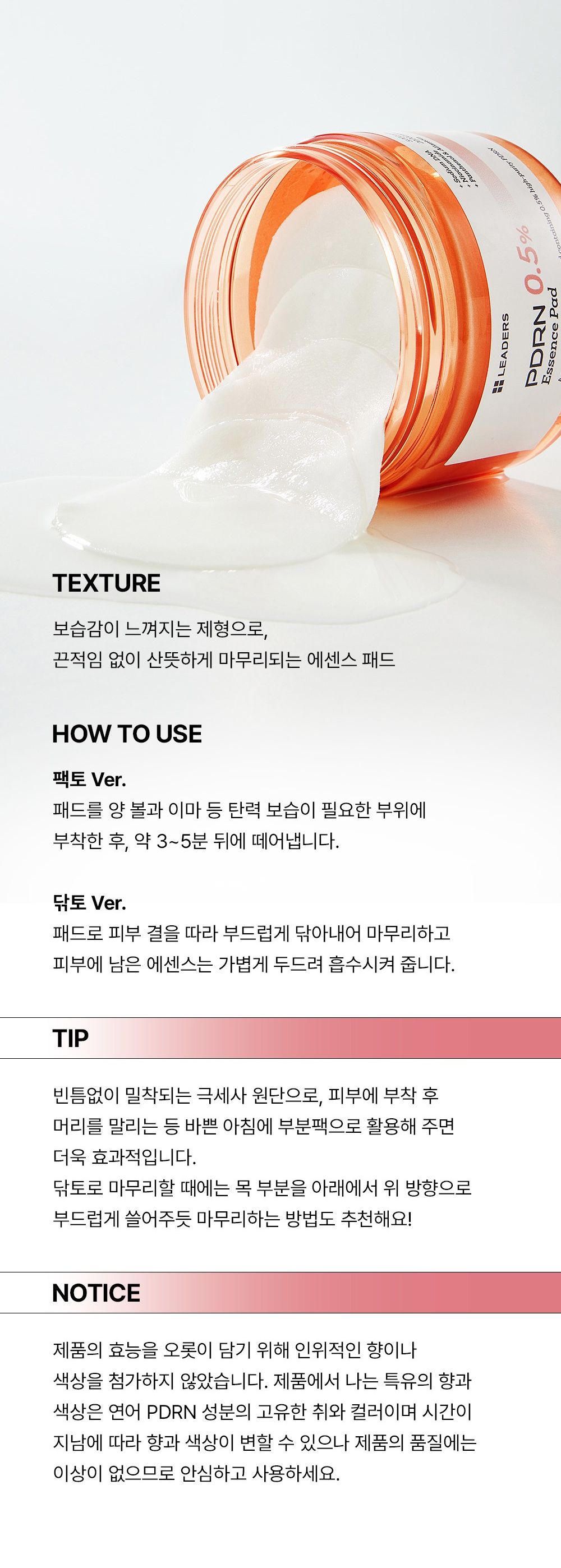 - 0.5% PDRN: High concentration salmon DNA for effective regeneration