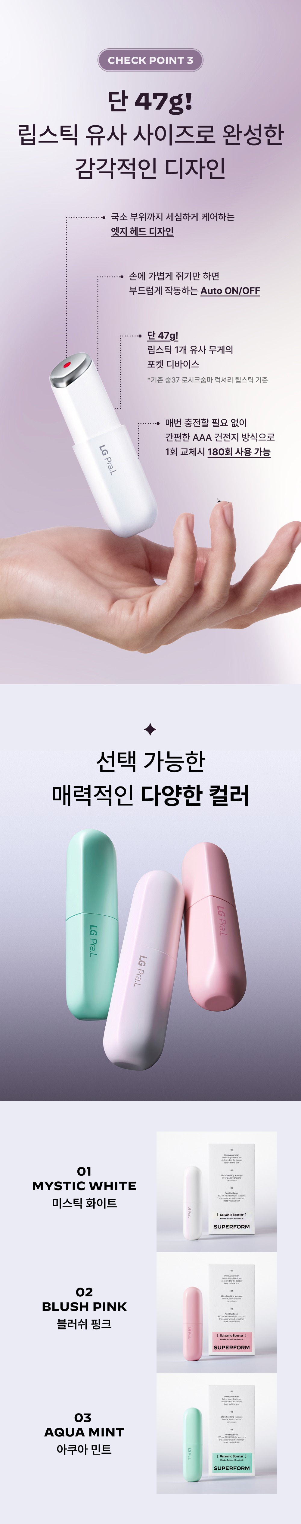 Designed for optimal performance and gentle care, the LG Pra.L Superfoam Galvanic Booster is a high-absorption, low-irritation beauty device suitable for all skin types. Its sleek, ergonomic design in elegant white, delicate pink, or refreshing mint makes it a stylish and indispensable addition to your daily regimen.