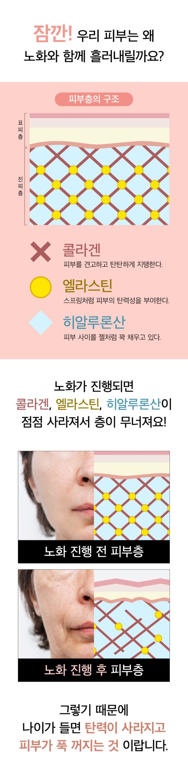 As we age, these components decrease, causing sagging and loss of skin firmness.
