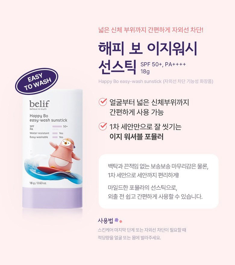 This sunscreen stick offers smooth, non‑sticky application with a subtle white tint that blends beautifully on delicate baby skin. It forms a reliable UV protection barrier, yet washes off easily with a single, gentle cleanse—minimizing friction and irritation.