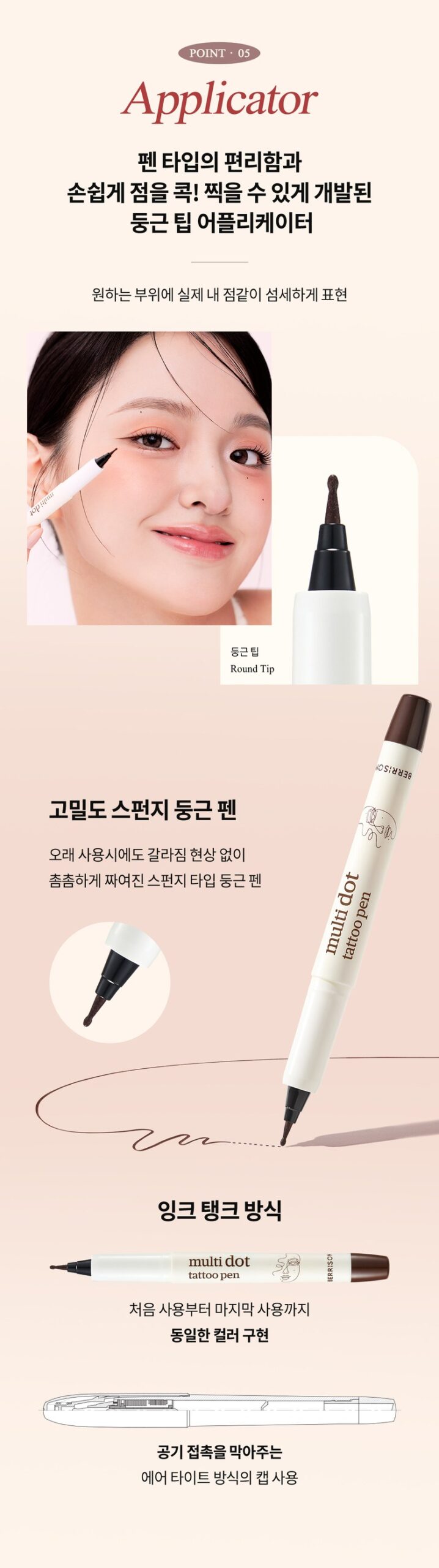 Add a modern twist to your makeup routine with the BERRISOM Multi Dot Tattoo Pen—perfect for customizing your charm point anytime, anywhere.