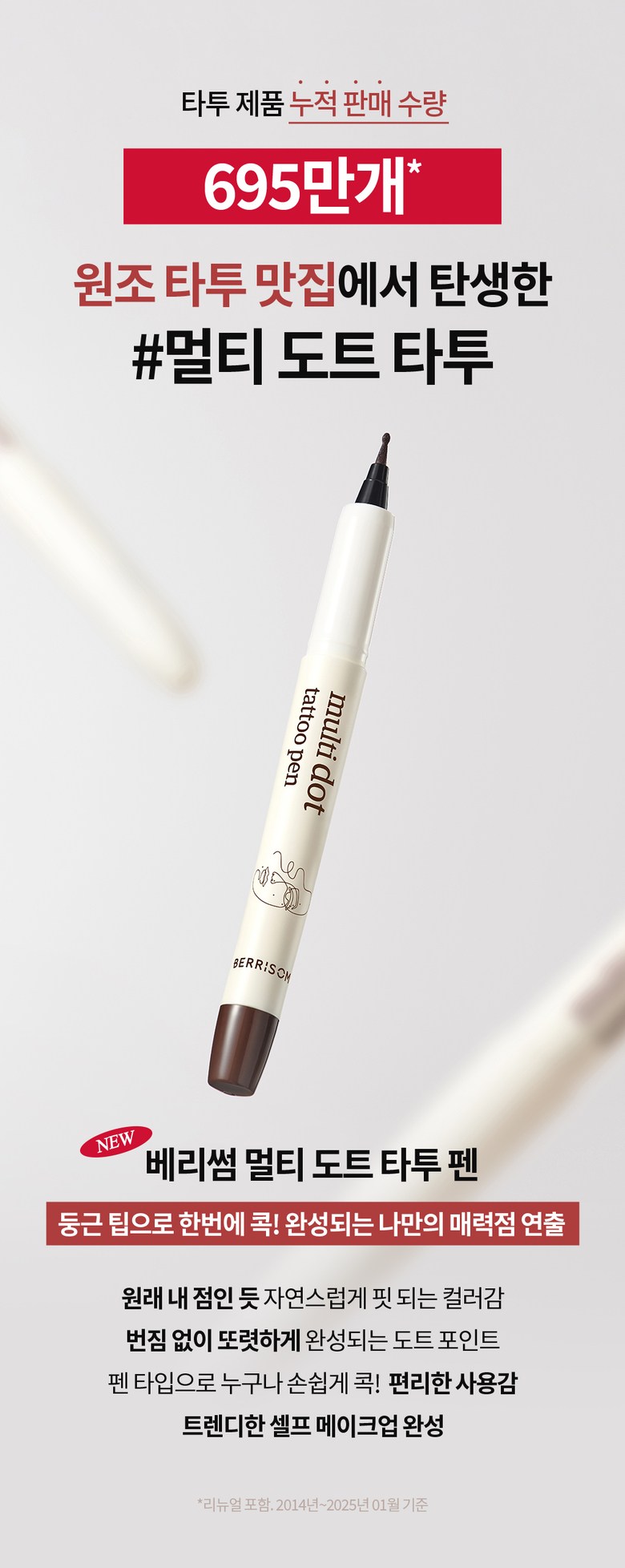 Over 6.95 million tattoo products sold – BERRISOM’s Multi Dot Tattoo Pen is the go-to beauty tool for effortlessly adding charm and character to your look with a single tap.