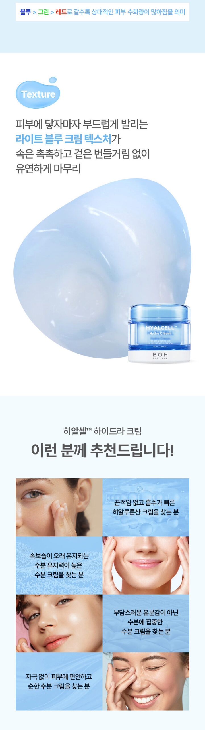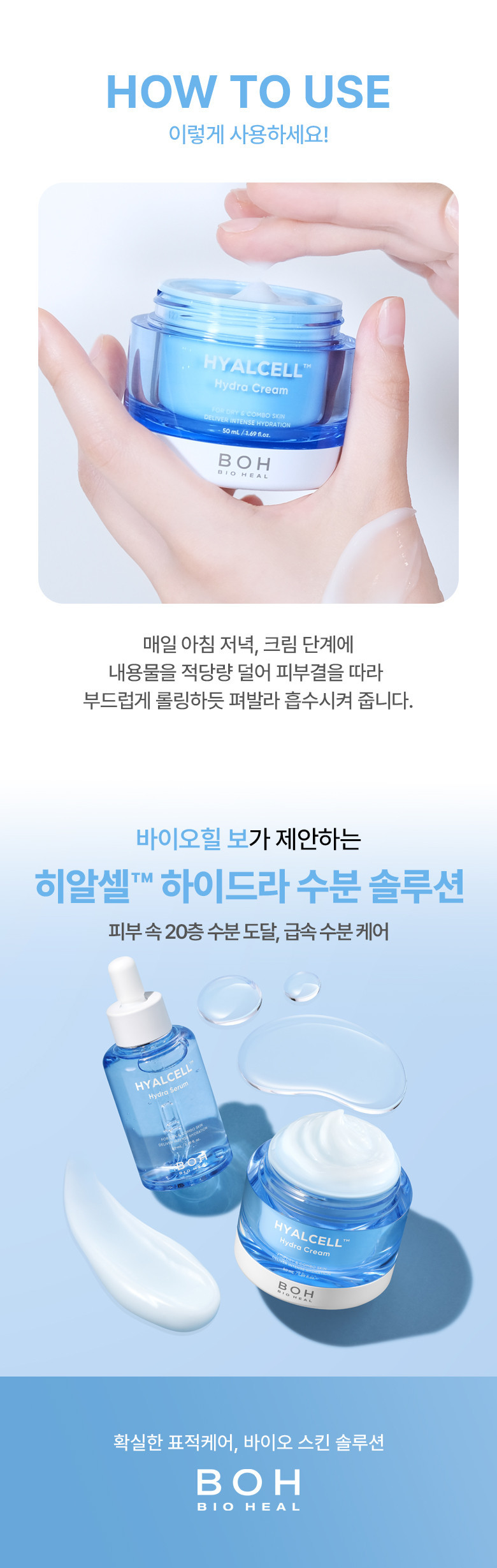 Designed for long-lasting hydration, Hyalcell Hydra Cream features a Holding Network Structure that locks moisture in and a Long-Lasting Moisture System that creates a protective barrier on the skin’s surface.