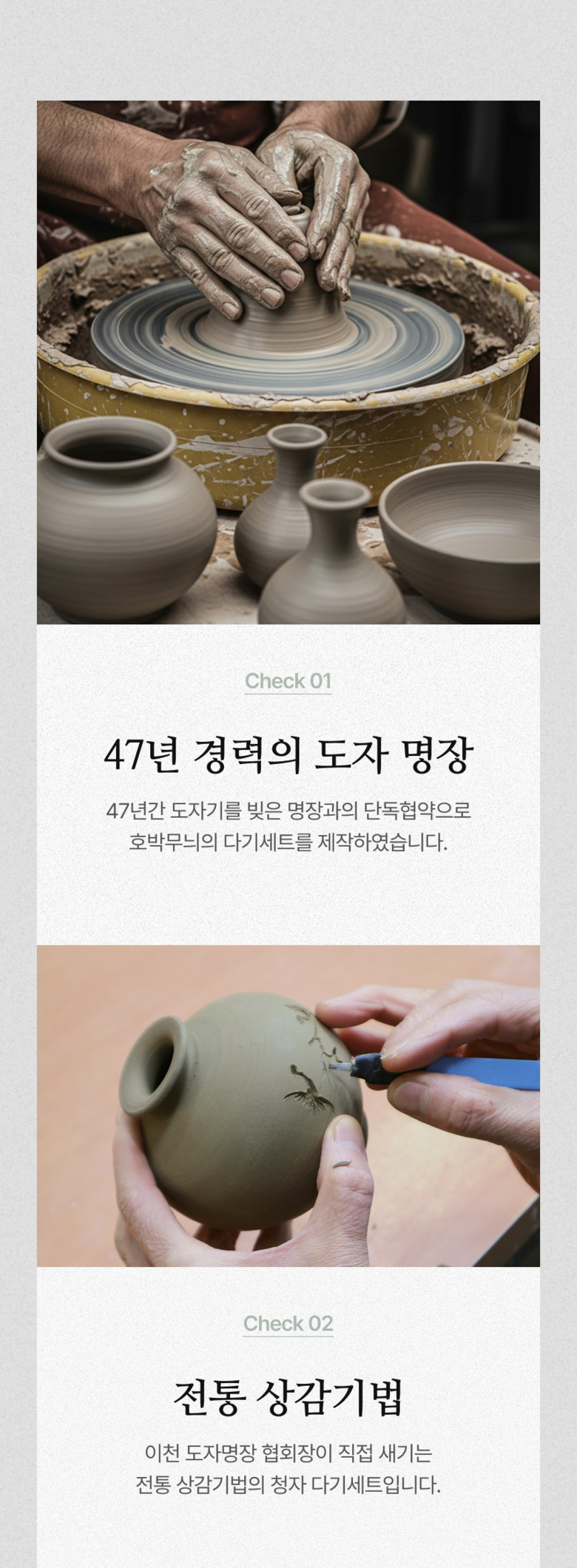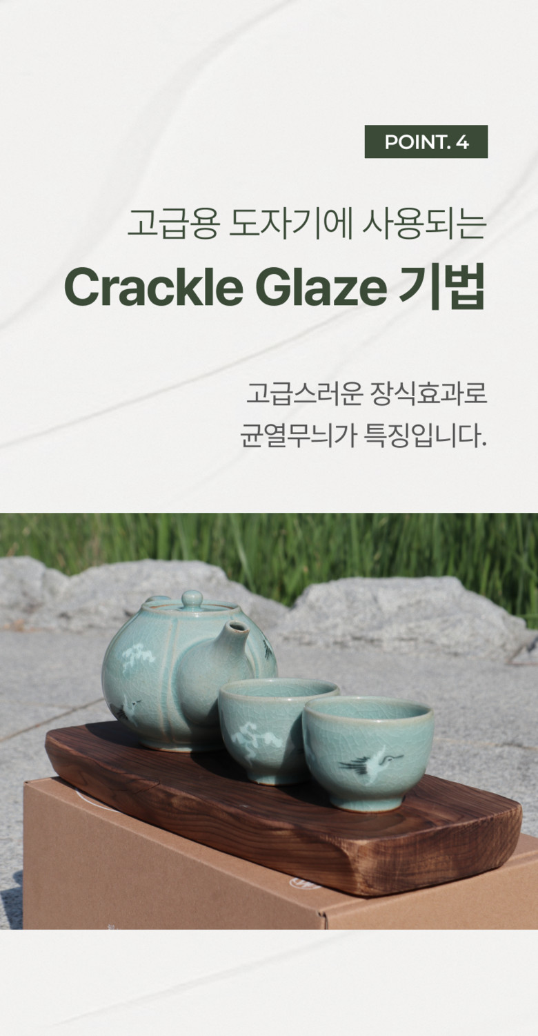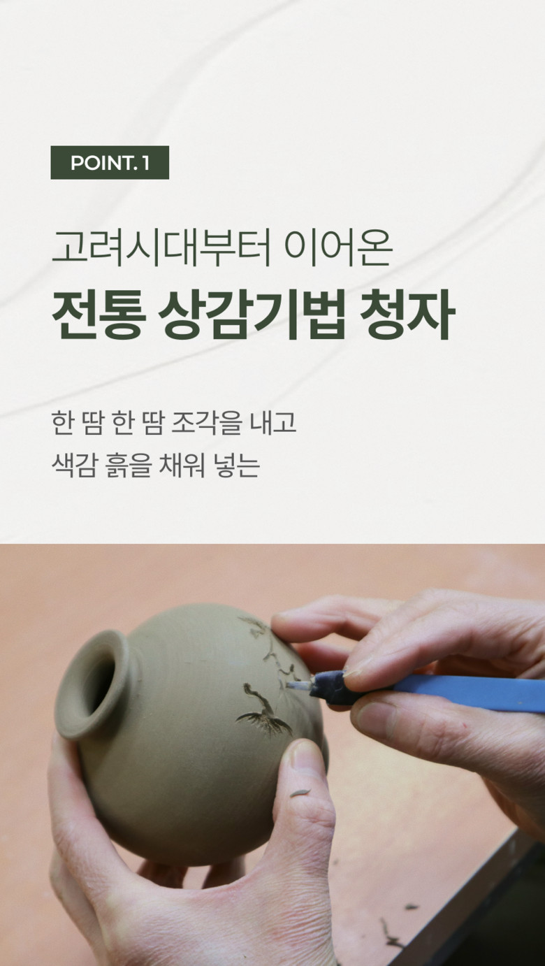 Created using the historic Korean inlay method (Sanggam), this celadon tea set is personally engraved by the president of the Icheon Master Ceramics Association.