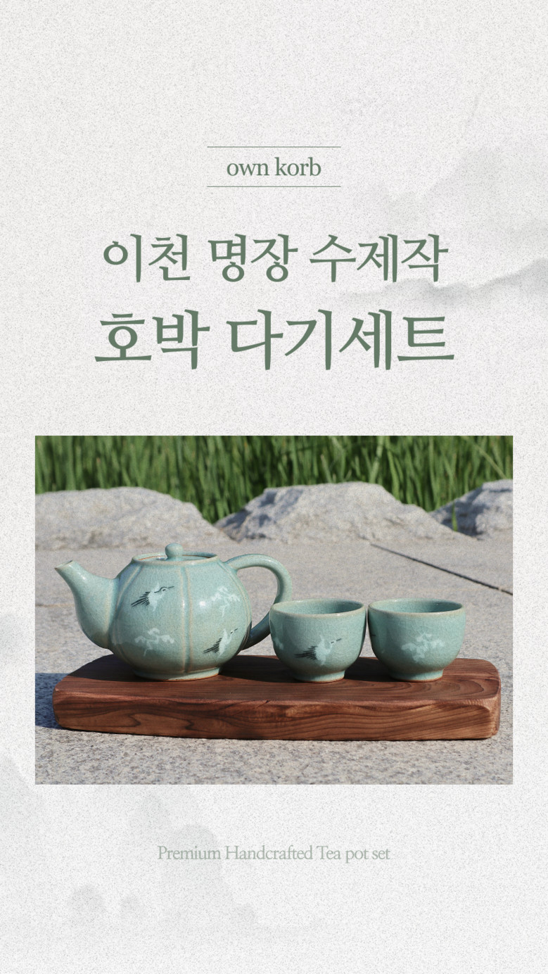 Icheon Master Craftsman’s Handmade Pumpkin Tea Set – Celadon Elegance