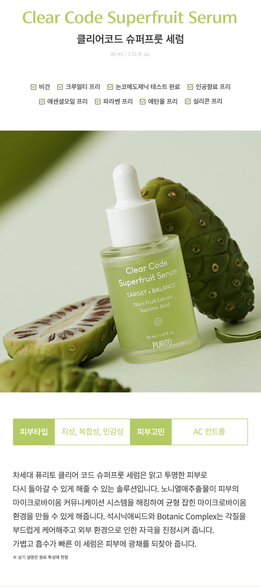 Okay, so I’ve been using this Purito Clear Code Superfruit Serum for about two weeks now and WOW. I’m in Vancouver right now and it’s super humid here – my skin was going crazy with oil! But the serum really works wonders; it soaked in fast and left me feeling refreshed without that greasy aftermath. The noni extract? A total game changer! My pores look cleaner already, not to mention the fact I hardly had any breakouts after a long week out enjoying nature trails. If you’ve got combo or sensitive skin like mine, definitely give this stuff a shot!