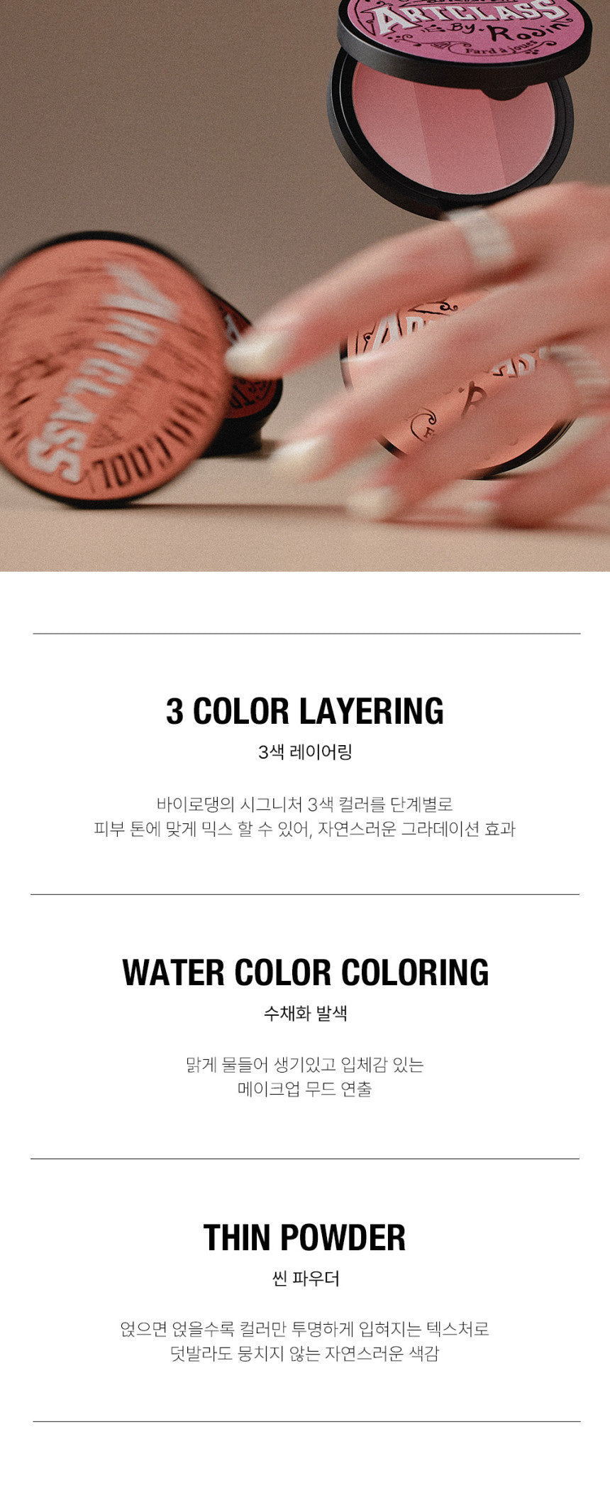 The Artclass By Rodin Blusher stands out with its watercolor-like pigmentation, providing a clear, vibrant look that adds depth and dimension to your makeup. Its ability to create a lively and sculpted appearance is unparalleled, ensuring a fresh makeup mood every time.