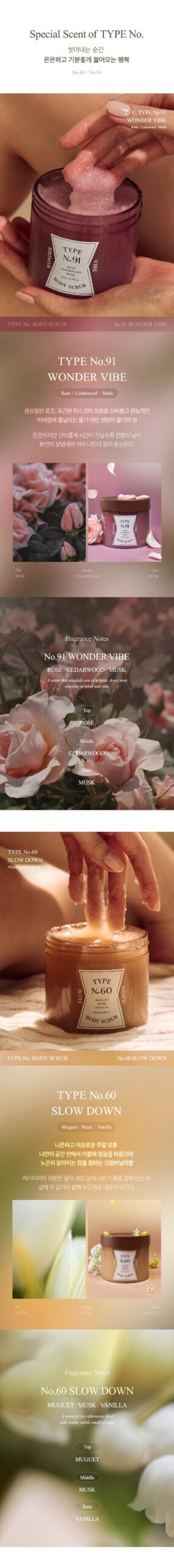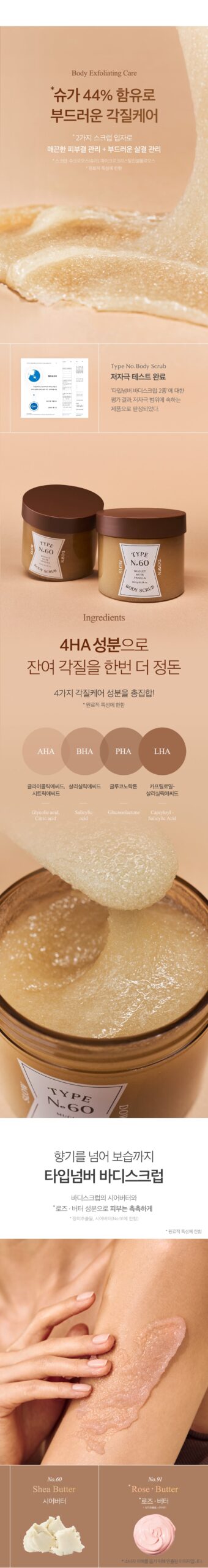 The TYPE No. Body Scrub series has undergone dermatological testing and has been certified as a hypoallergenic product, making it suitable for sensitive skin types.