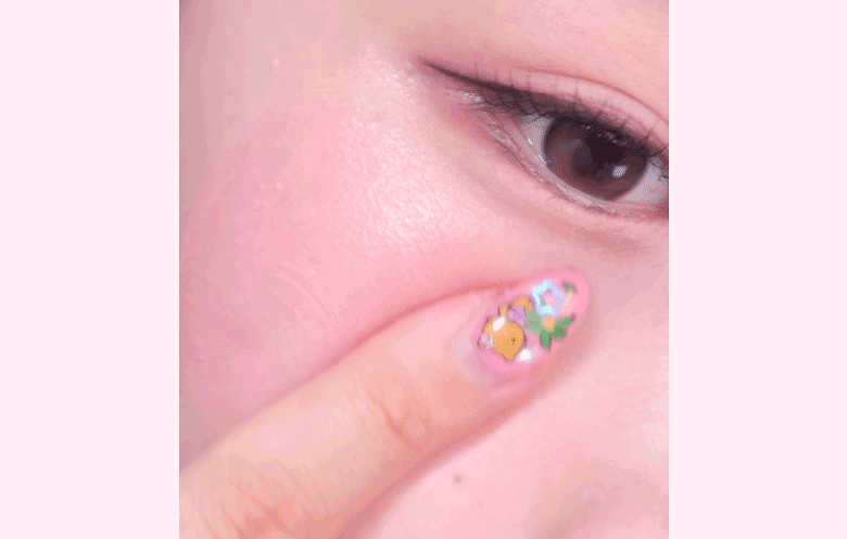 - Use the specially designed Mini Finger Puff to apply the blusher. Its unique coating mimics your skin’s natural fingerprint texture, ensuring streak-free application without disturbing your base makeup.